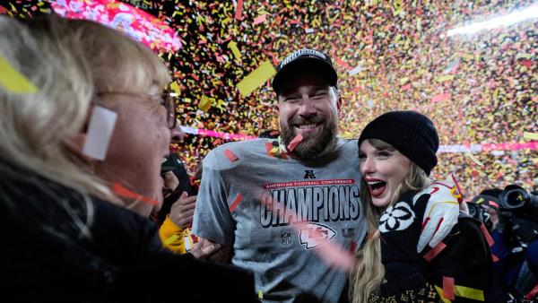 名人喜欢友好面孔的公开谈话斯威夫特巩固了近年来娱乐明星、体育人物和政界人士为传递特定信息而采取的趋势。与友好面孔进行长篇对话胜过回答爱打听的记者的问题。在这期节目中,斯威夫特和特拉维斯·凯尔斯挽着手臂,在互相欣赏的问题间低声细语。"我男友说,"当凯尔斯说得太过火时,斯威夫特这样插话道。